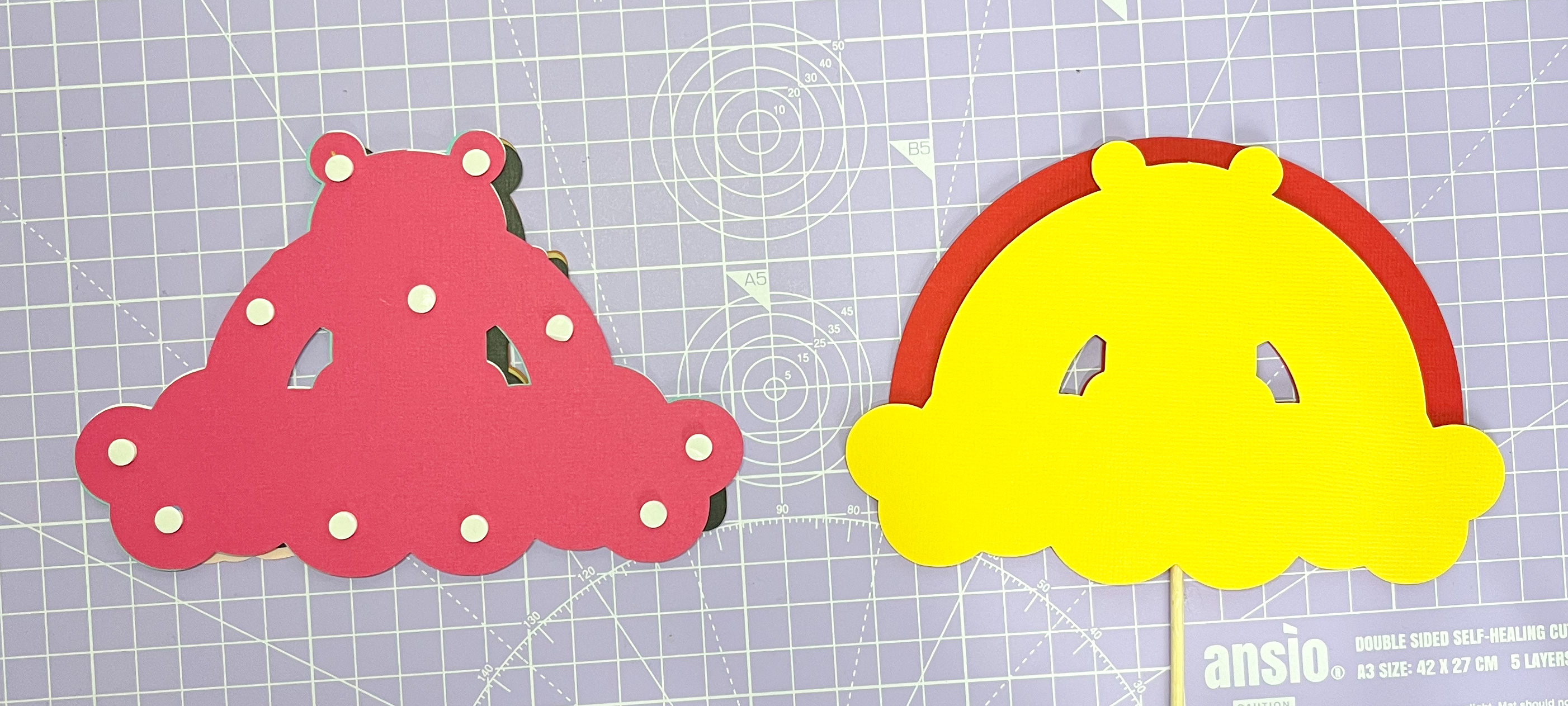 Card stock in red, yellow, pink, blue, white, black, light brown and brown colours.