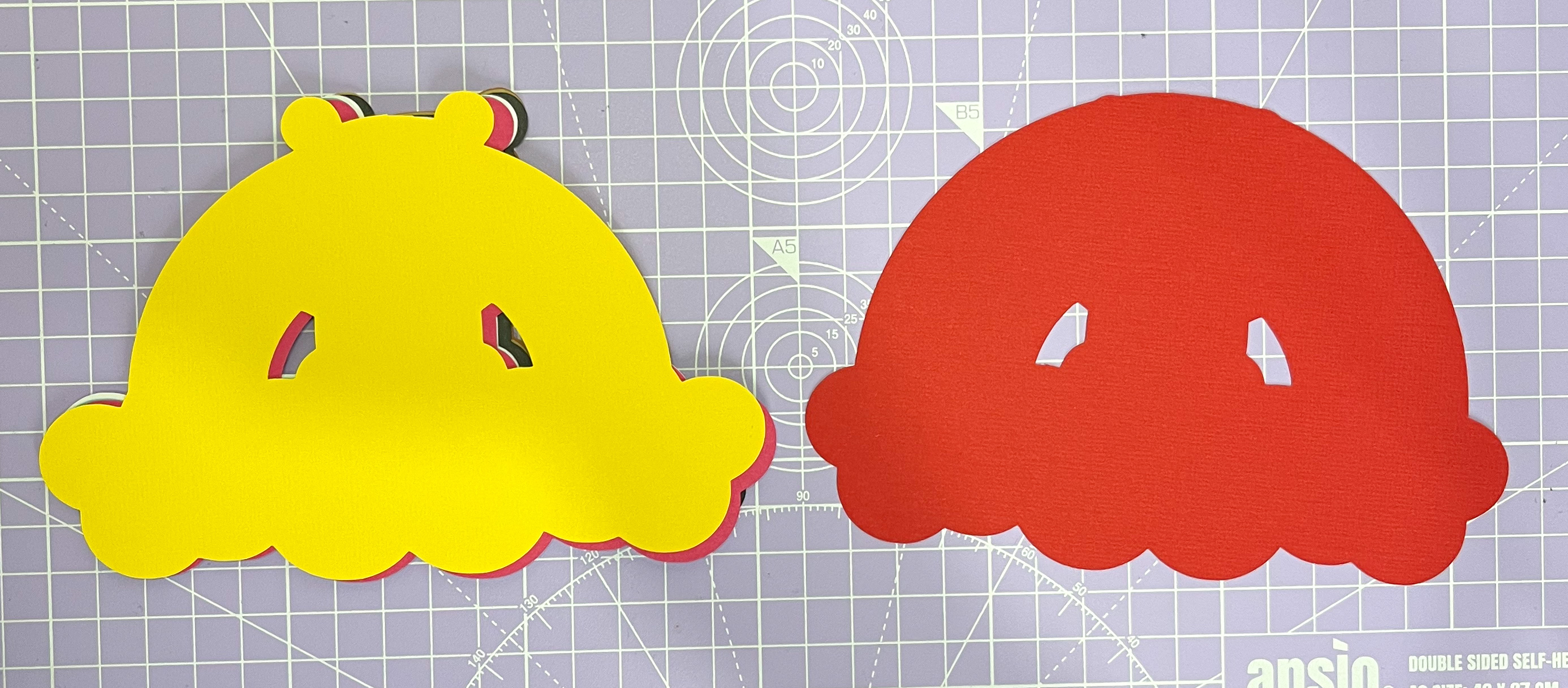 After cutting out all your card stock pieces, arrange them in order, then flip the entire stack so that the back red card stock piece is facing up.