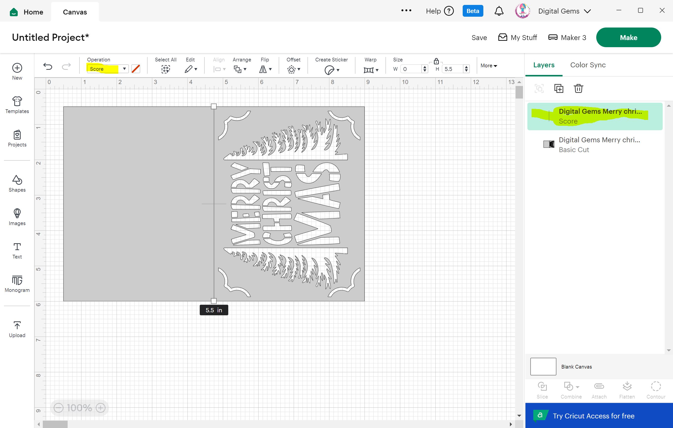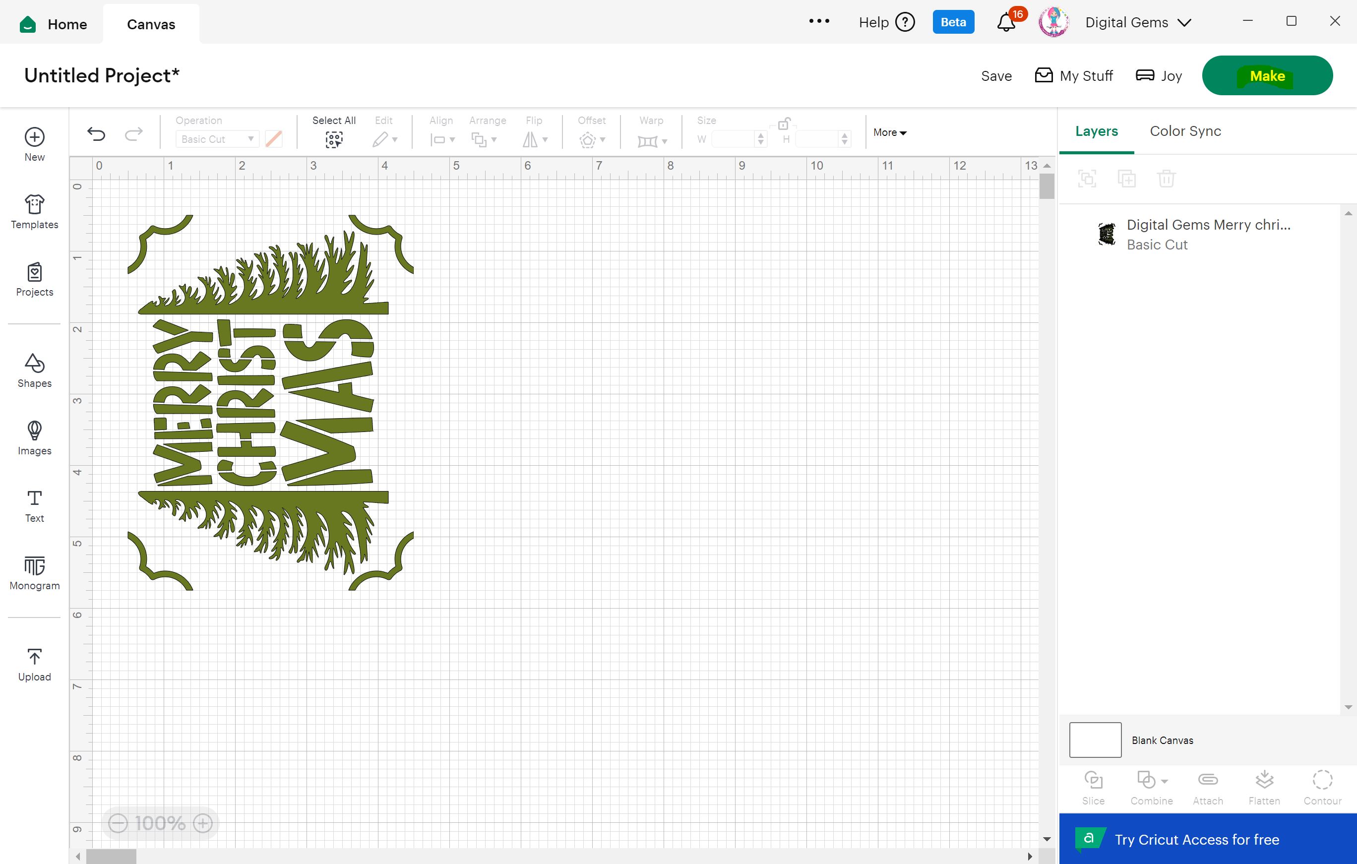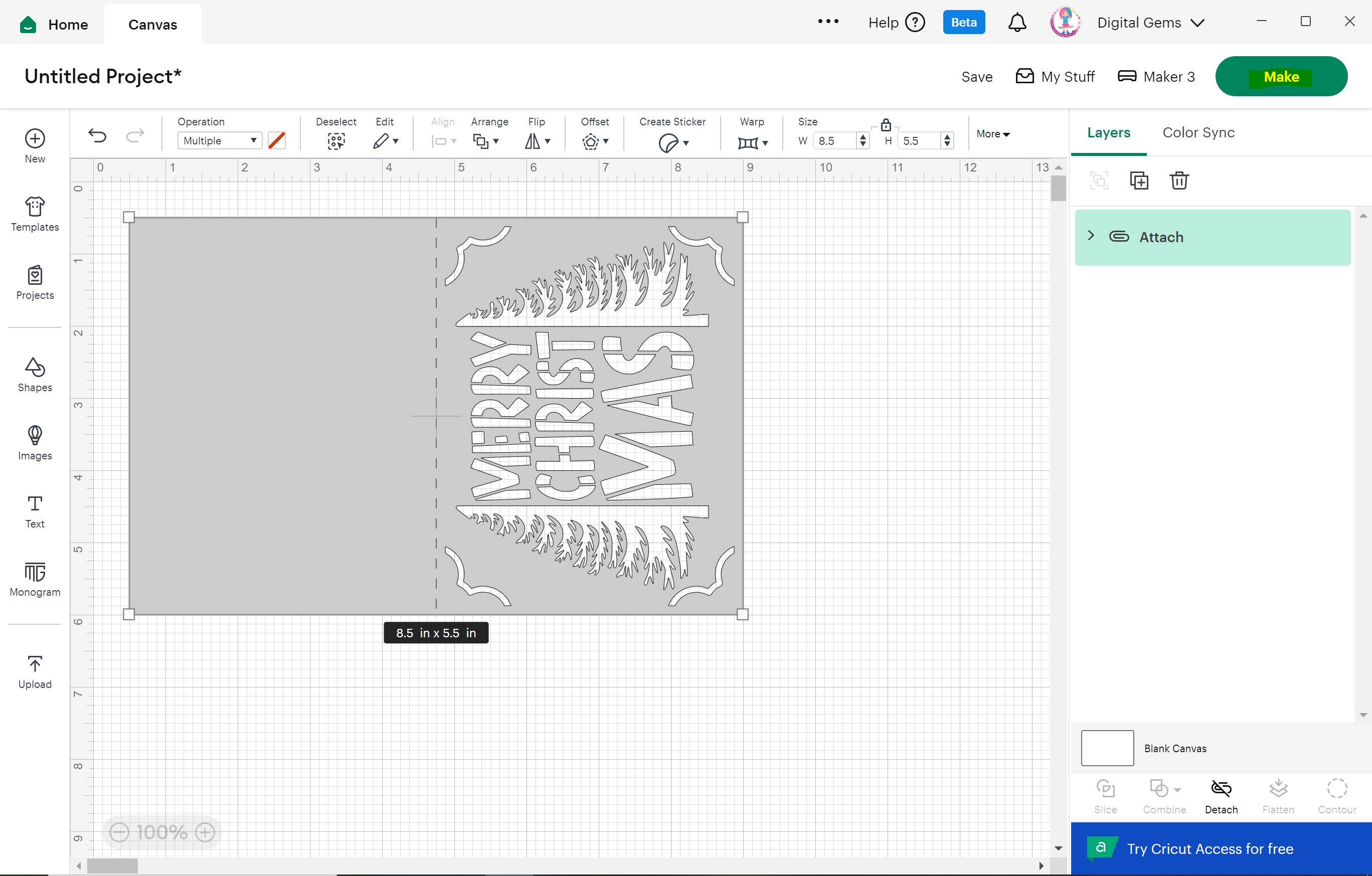 3) Select the Cricut Explore and Maker SVG from your downloads and upload it onto your Cricut canvas