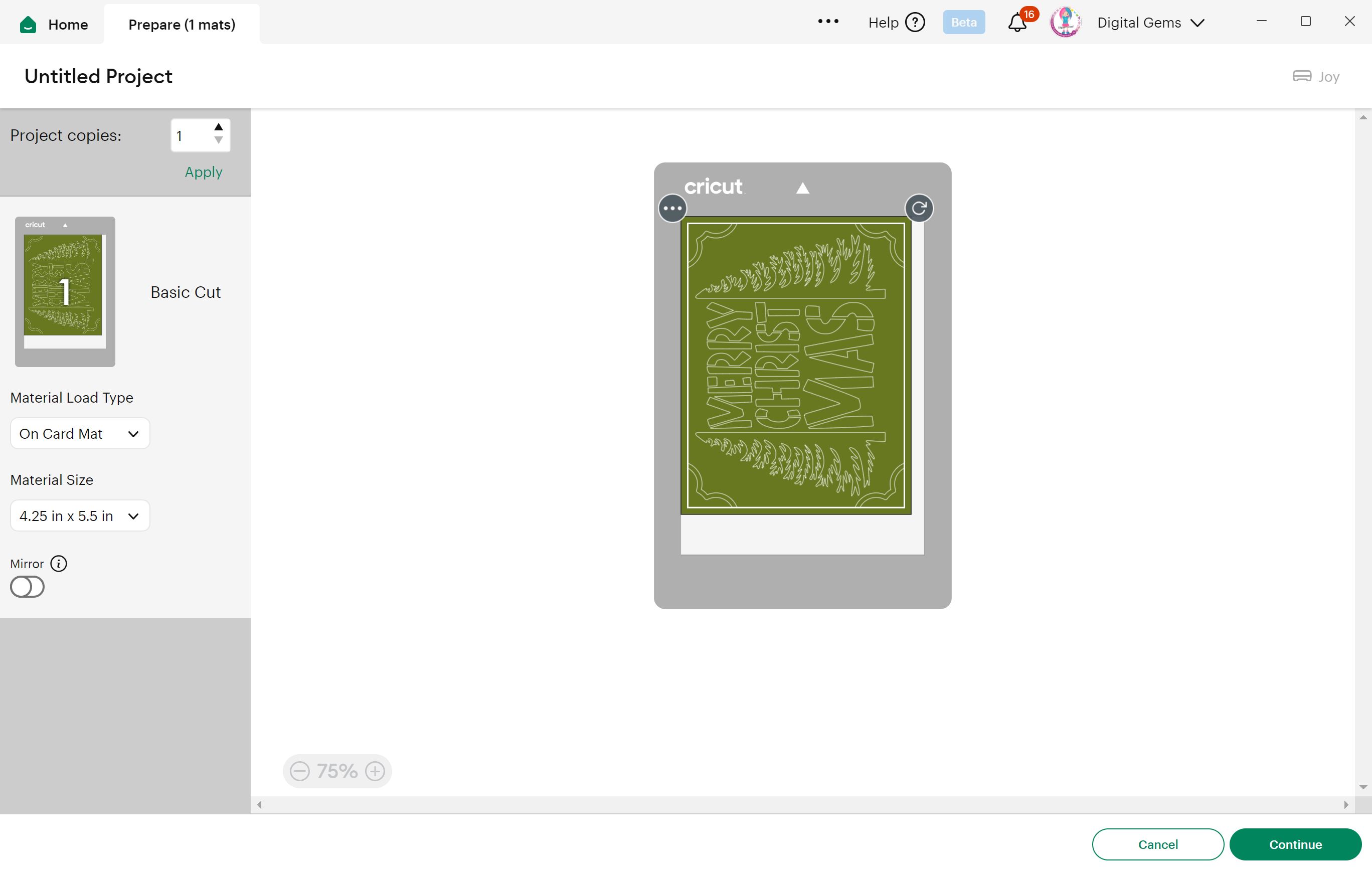 7) Click make it, select the card mat, and cut your card stock pieces out on the 4.25 x 5.5 inch card blanks.