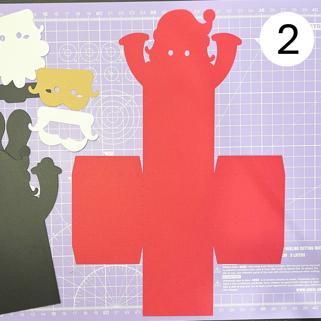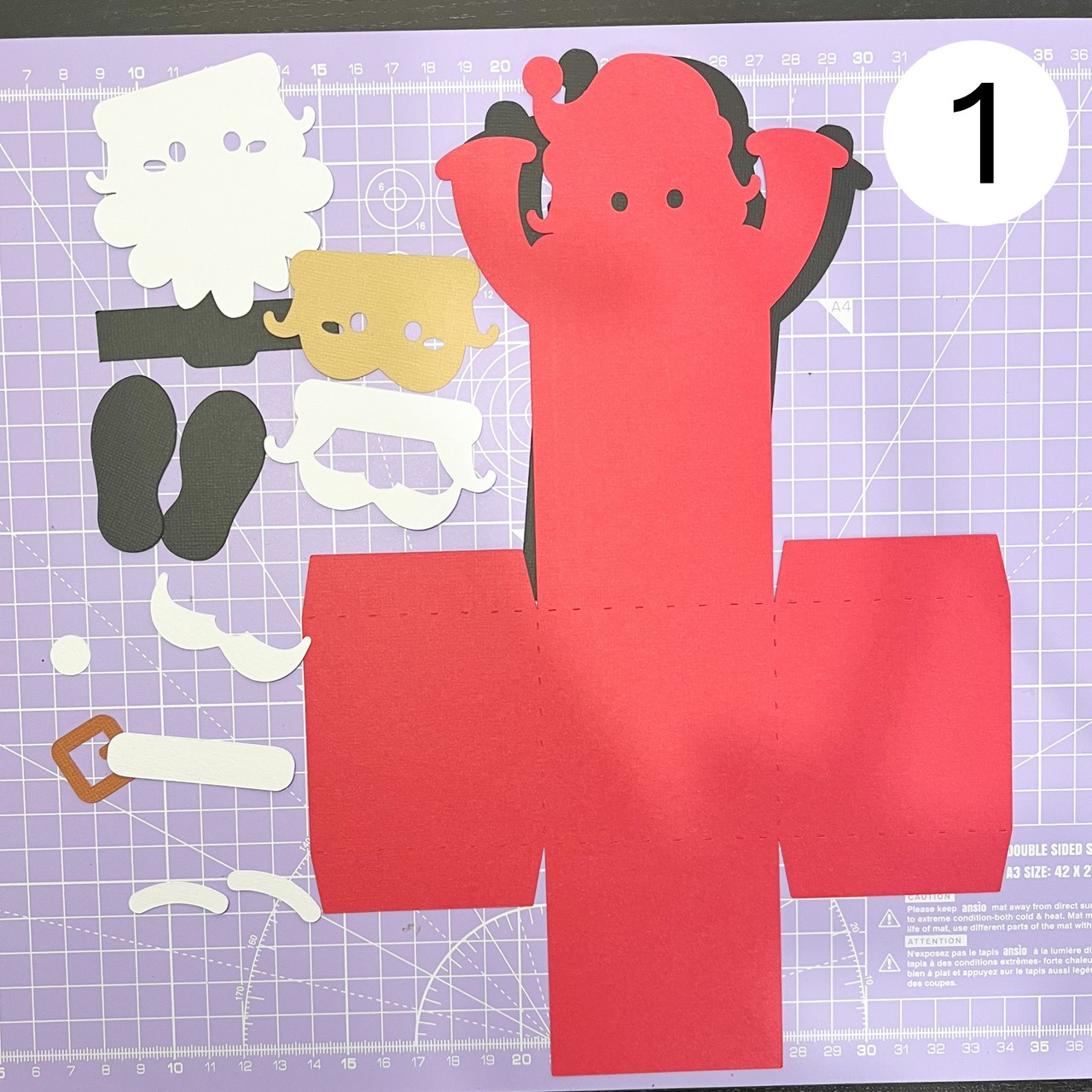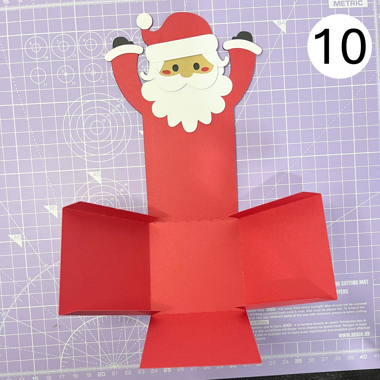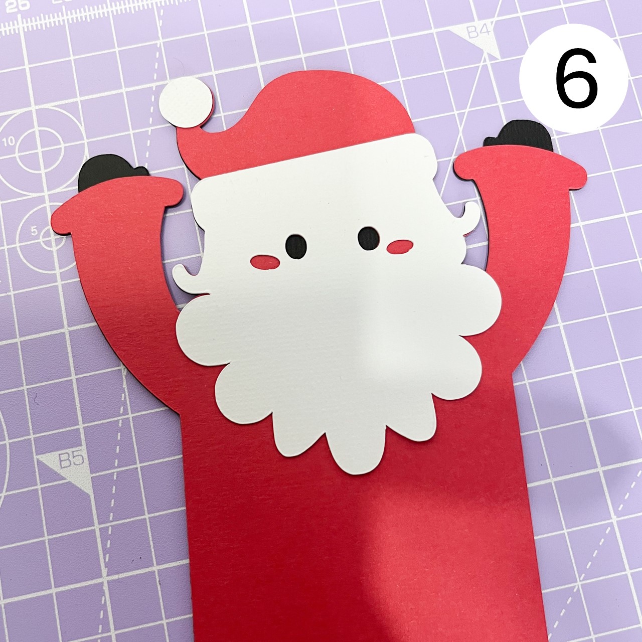 Fold the tabs upwards and stick them to Santa's body, aligning them as shown in the photo.