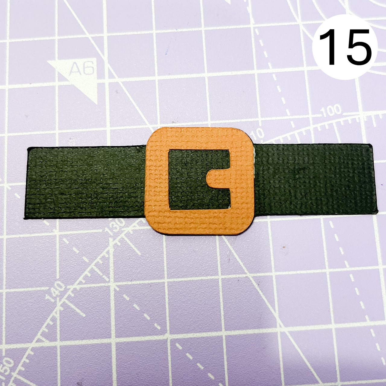 Now, let's create the belt. Glue the buckle onto the belt, positioning it neatly in the center.