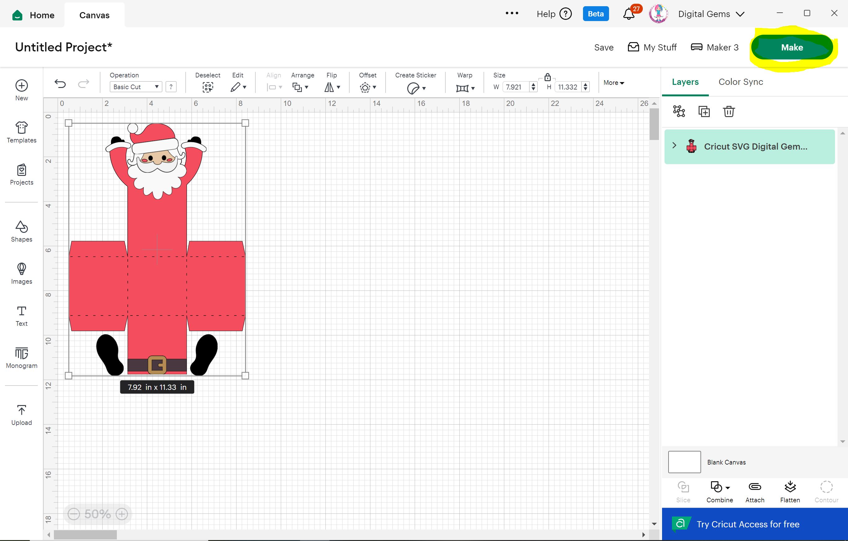 4) Click make it, and follow instructions on screen to cut your card stock pieces out.